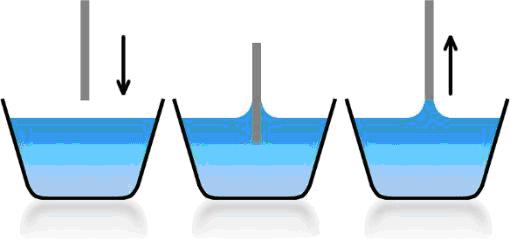 表面張力最為精確的測(cè)量技術(shù)是測(cè)量彎液面,這就是Kibron優(yōu)于其他表面張力儀競(jìng)爭(zhēng)者的原因,這也是隱藏在Kibron公司后面的無與倫比的產(chǎn)品性能的唯一秘密。Kibron產(chǎn)品采用了精確的測(cè)定技術(shù)徹底革新了表面張力的測(cè)定。經(jīng)過多年的經(jīng)驗(yàn),Kibron證實(shí)了這是一種毫無疑問的絕對(duì)精確的測(cè)定表面張力的方法,不像環(huán)形探針和Wilhelmy板方法,桿狀方法非常適合測(cè)量高粘性的液體:油、聚乙烯、繪畫顏料等。