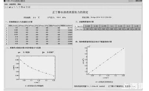 借助MATLAB工程計(jì)算平臺(tái),通過(guò)程序設(shè)計(jì)完成了“正丁醇水溶液表面張力的測(cè)定”應(yīng)用軟件的開(kāi)發(fā)。在完成錄入壓差實(shí)驗(yàn)數(shù)據(jù)后,不僅可以自動(dòng)計(jì)算和填入溶液的表面張力,還能夠?qū)崿F(xiàn)溶液表面張力與濃度定量關(guān)系的希斯科夫斯基經(jīng)驗(yàn)方程(Szyszkowski′s equation)中待估參數(shù)的求解,并用以求導(dǎo)供給吉布斯公式計(jì)算溶液的吸附量,進(jìn)而推算溶液飽和吸附量和正丁醇分子的截面積。軟件的操作過(guò)程簡(jiǎn)便、直觀、高效,避免了人工數(shù)據(jù)處理、繪圖的煩瑣和人為誤差,可提高實(shí)驗(yàn)結(jié)果的準(zhǔn)確性和重現(xiàn)性。