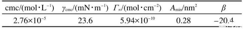 表140°C時烷基季銨鹽CTAB與AES復(fù)配體系(摩爾比為1:1)的表面性質(zhì)和特征參數(shù)β