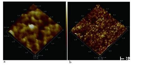 圖6空白硅片(2μm×2μm)與DEAE瓊脂糖LB膜(6μm×6μm)AFM 3D圖像