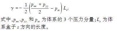 每個(gè)模型都經(jīng)過(guò)100 ns的MD模擬,保證油水界面充分達(dá)到平衡狀態(tài),油水界面張力的計(jì)算采用50 ns的數(shù)據(jù),通過(guò)3次獨(dú)立模擬獲得界面張力數(shù)值。本文中對(duì)界面張力(IFT)的計(jì)算方法選用Gibbs界面張力計(jì)算法,模型中油水界面位于XY平面內(nèi),界面張力計(jì)算公式為