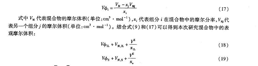 二元混合物中組份i的表觀摩爾體積Vφi可由下式計(jì)算得到:
