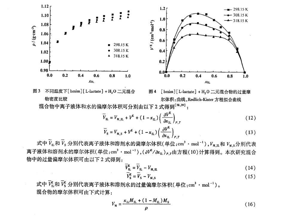 2.3[bm im][L-lactate]+H2O二元混合物的體積性質(zhì)