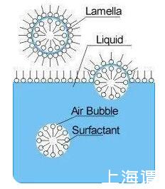 說(shuō)了這么多,表面張力和泡泡到底有什么關(guān)系呢?純水的表面張力比較大,不能形成穩(wěn)定的泡泡,因?yàn)榕菖莸漠a(chǎn)生會(huì)增大氣液間的表面積,使得表面自由能增大,這是熱力學(xué)不穩(wěn)定的。加入表面活性劑后,表面活性劑的親水基團(tuán)插入水相,疏水基團(tuán)豎在空氣中,這樣降低了表面張力,讓泡泡能穩(wěn)定存在一段時(shí)間。從下面這張圖中可以看出,泡泡膜是三明治結(jié)構(gòu),兩側(cè)是表面活性劑,中間夾著一層水,這一三明治結(jié)構(gòu)對(duì)后面泡泡水的配方至關(guān)重要。