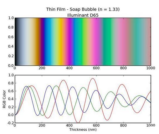 泡泡膜顏色與厚度的關(guān)系|來(lái)源:physics.stackexchange.com