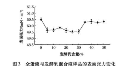 2.3全蛋液與發(fā)酵乳混合液的表面張力變化