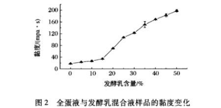 2.2全蛋液與發(fā)酵乳混合液的黏度變化