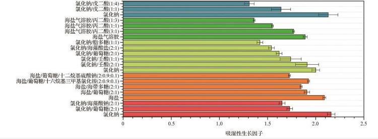 在實驗室中通過吸濕串聯差分電遷移率分析儀測量給定RH下的粒徑與干粒徑的比值,以通過吸濕性生長因子來量化吸濕性。最近許多研究關注到表面活性物質對顆粒吸濕性的影響。圖4總結了當前一些研究中量化的表面活性物質對SSA模擬物吸濕性的影響。