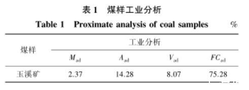表1煤樣工業分析
