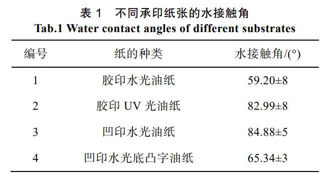 表2普通商用油墨對(duì)于不同承印紙張的接觸角和界面張力