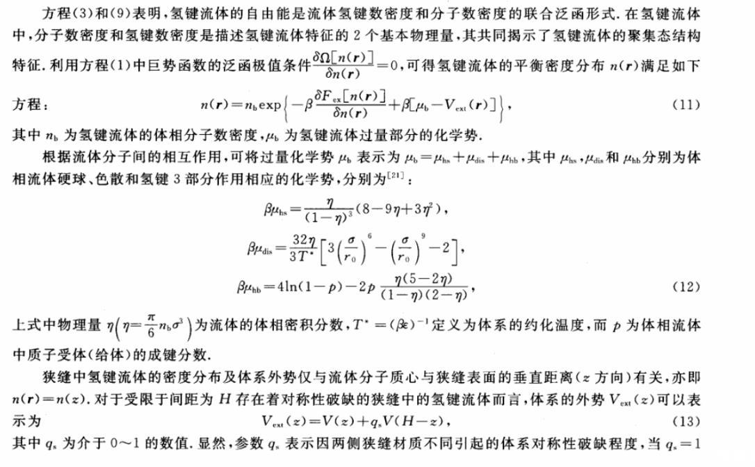 其中nb為氫鍵流體的體相分子數(shù)密度,μb為氫鍵流體過量部分的化學(xué)勢(shì)。