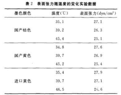 對于主要成分是有機(jī)油類的陶瓷墨水,隨著溫度的升高,內(nèi)部分子運(yùn)動(dòng)加劇,分子之間距離增大,使得分子力減弱,從而導(dǎo)致液體表面使其面積縮小的力減弱,即表現(xiàn)為表面張力減小(見圖2)。