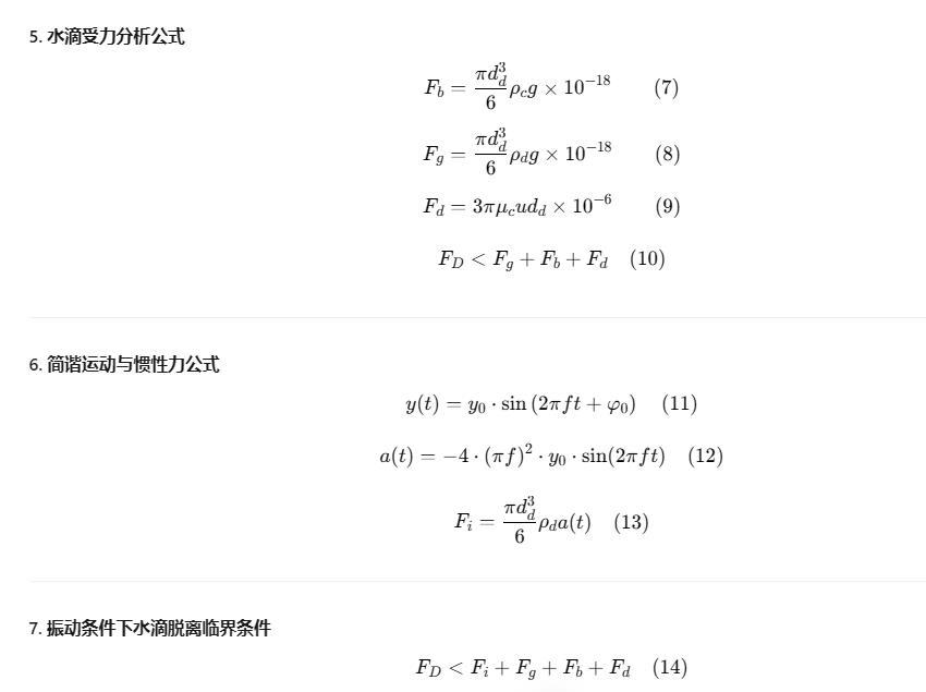 當(dāng)水滴所受的重力、浮力、曳力之和大于纖維的最大粘附力時,如公式(10)所示,水滴從纖維上脫離。