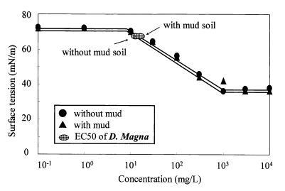 圖13泥質(zhì)土壤存在對(duì)大型水蚤AS表面張力曲線和有毒表面張力值的影響。