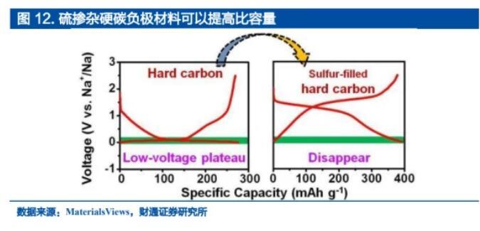 可以用作鈉電池負極的無定形碳主要分為硬碳和軟碳。其中在2500°C以上的高溫下能石墨化的為軟碳,在2500°C以上的高溫下不易石墨化的為硬碳。無定形碳儲鈉能力好、可逆比容量高、循環(huán)性能好,商業(yè)化趨勢明顯。同時軟碳和硬碳都可以通過原子摻雜提高材料的層間距,制備納米結(jié)構(gòu)碳材料縮短鈉離子擴散途徑等方式提高電化學性能。