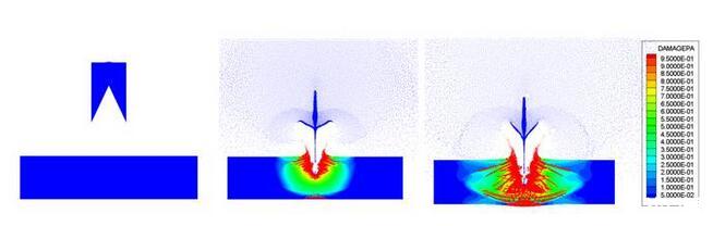 聚能射流侵徹混凝土靶板過程