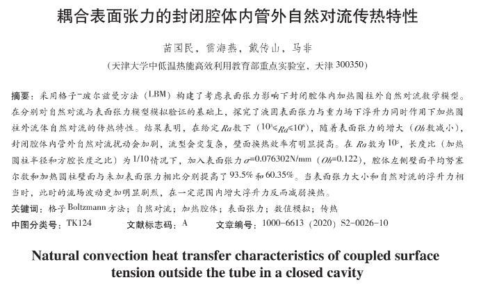 耦合表面張力的封閉腔體內管外自然對流傳熱特性
