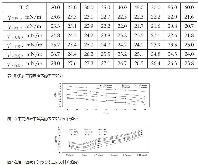 表面張力的意義,醇類在不同溫度下的表面張力測定數據